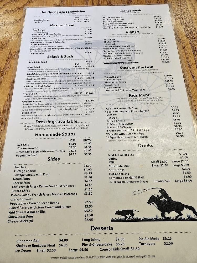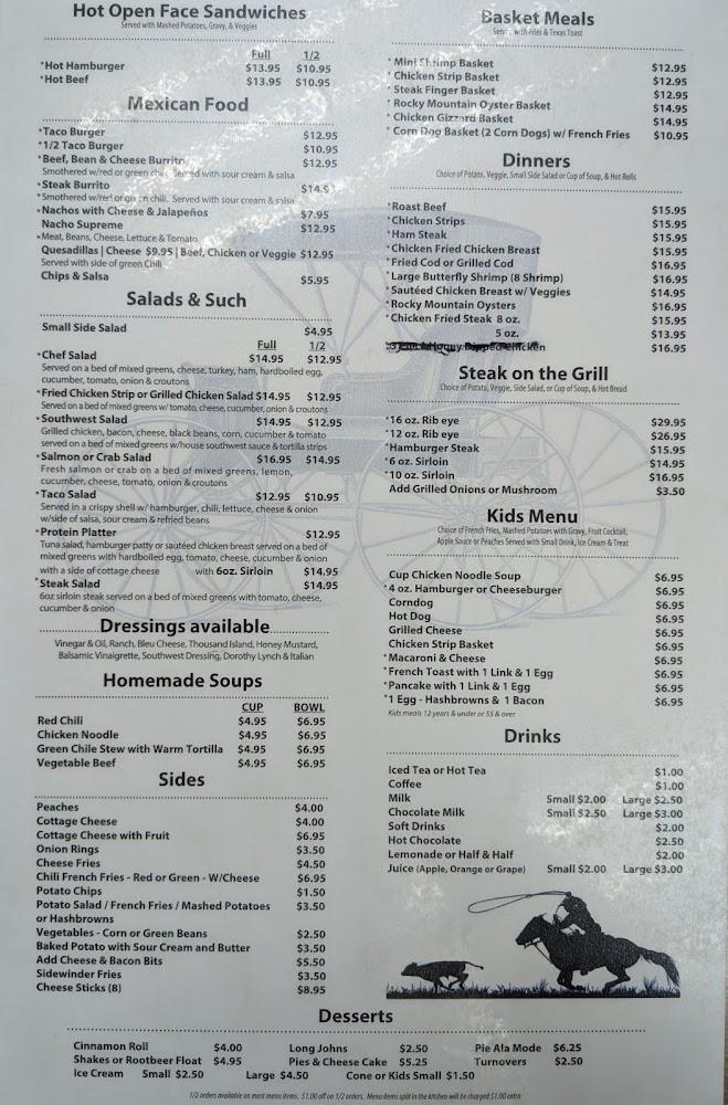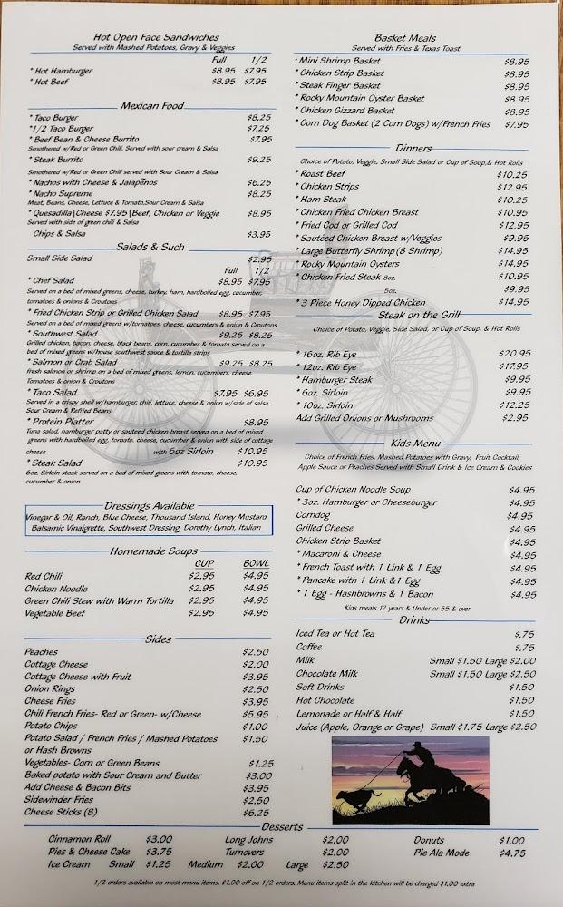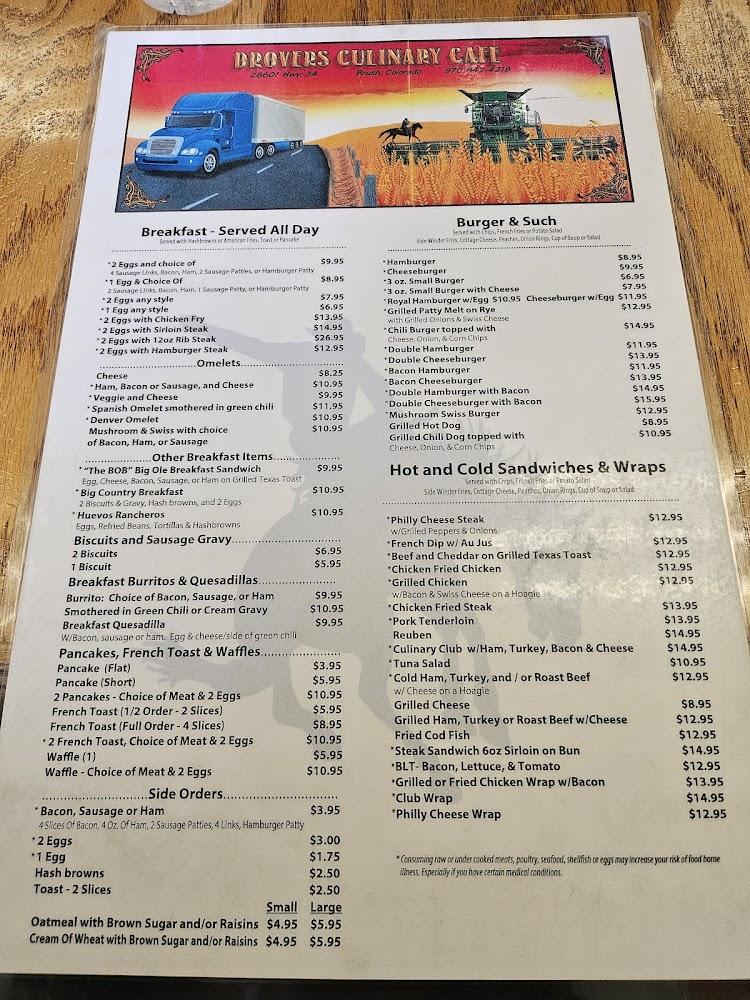 Drovers Culinary Cafe features a diverse menu focused on comfort food. Breakfast offerings include classic favorites like eggs, omelets, and hearty breakfast sandwiches. The lunch options feature sandwiches, burgers, and Mexican dishes, catering to various palates. Popular choices include the Philly Cheese Steak and Chicken Fried Chicken. With average prices around $5 to $13, diners find great value here. The cafe also offers an impressive selection of desserts, such as homemade pies and donuts. Drinks include coffee, iced teas, and lemonades. Whether it’s for breakfast, lunch, or a sweet treat, the menu ensures something for everyone!